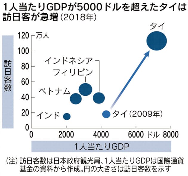 訪日客、東南アから熱風 GDP1人5000ドル超え映す